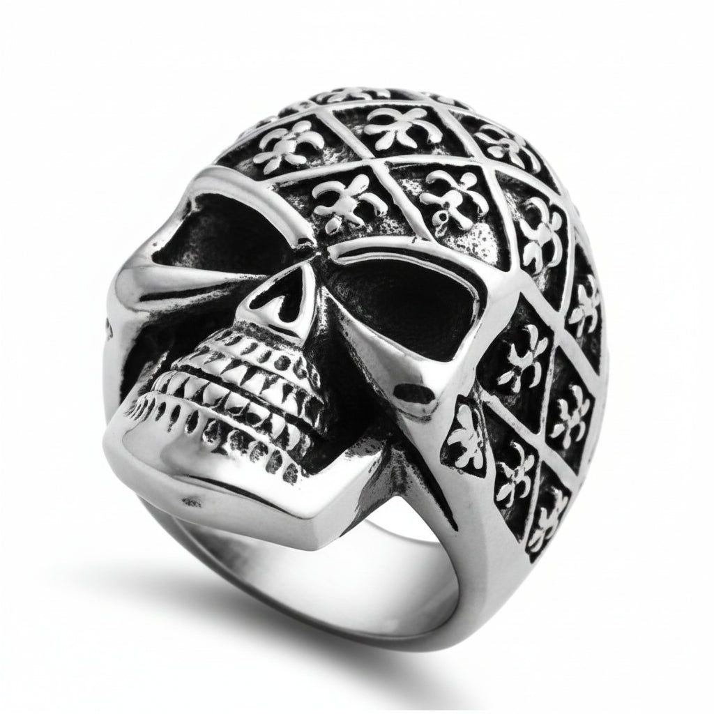 Stainless Steel Casting Ring - Fleur De Lis Skull