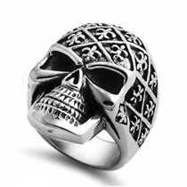 Stainless Steel Casting Ring - Fleur De Lis Skull Product Code: MSR-930 Face Width: 31mm Band Width: 8mm Finish: High Polish; Oxidized Stone: No Stone