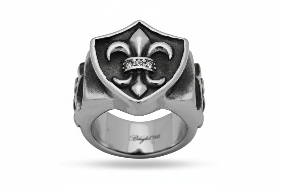 Stainless Steel Casting Ring - Fleur de Lys with Iron Cross Design