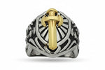 Stainless Steel Casting Ring Oxidized Two Tone Sword and Shield