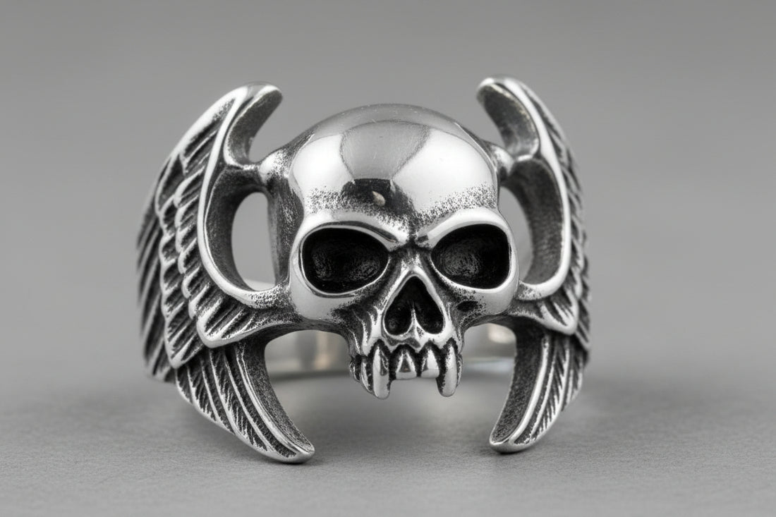 Stainless Steel Casting Ring Skull Destroyer Product Code: MSR-567 Face Width: 17mm Band Width: 6mm Finish: High Polished; Oxidized Stone: No Stone