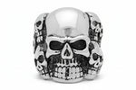 Stainless Steel Casting Ring Skulls Product Code: MSR-583 Face Width: 22mm Band Width: 5mm Finish: High Polished; Oxidized Stone: No Stone