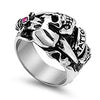 Stainless Steel Casting Ring - Skull - Skull w/ Rose Red CZ