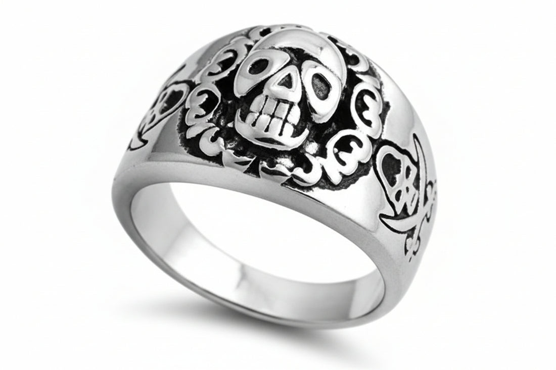 Stainless Steel Casting Ring - Skull - Skull w/ Star and Crowns