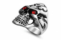 "Red-Eyed Skull" -Stainless Steel Ring with Garnet CZ