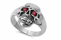 "Red-Eyed Skull 2" -Stainless Steel Ring with Garnet CZ